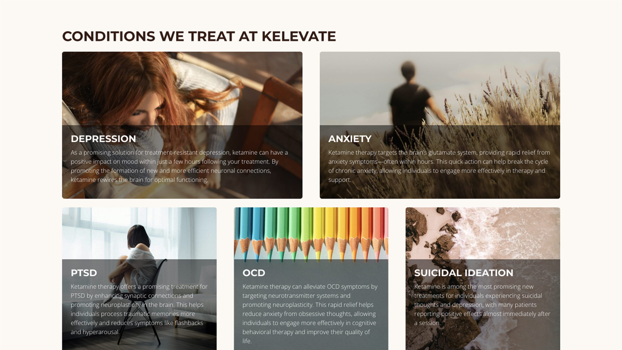 - Service Presentation: Organized content to clearly highlight all services, including ketamine treatment, advanced medication management and therapy sessions, so visitors can easily understand their options.